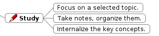 What knowledge or skills are you after? What do you want or need to learn exactly? Write a list of those things. This is going to be the basis for your study plan. Don’t even try to make it perfect the first time. You can come back to revise it as you learn more about your subject.